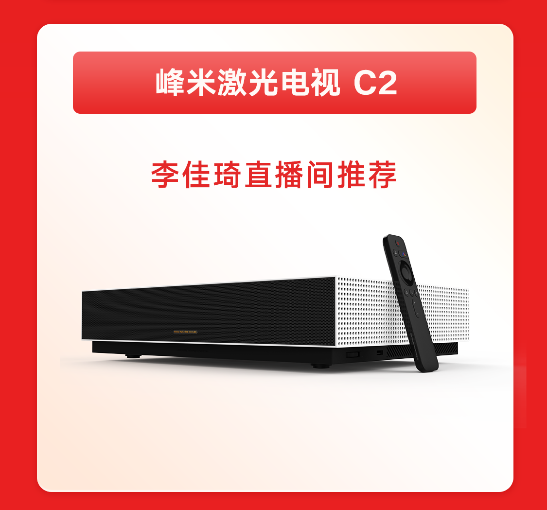 作为“颠覆激光电视底价”的代表,峰米激光电视C2在618活动中售价仅为9999元,搭配100吋菲涅尔柔性抗光屏套装同样以9999元价格预售,万元即享百吋大屏体验,在提供高性能的同时兼顾超级性价比,也受到了李佳琦直播间的推荐。